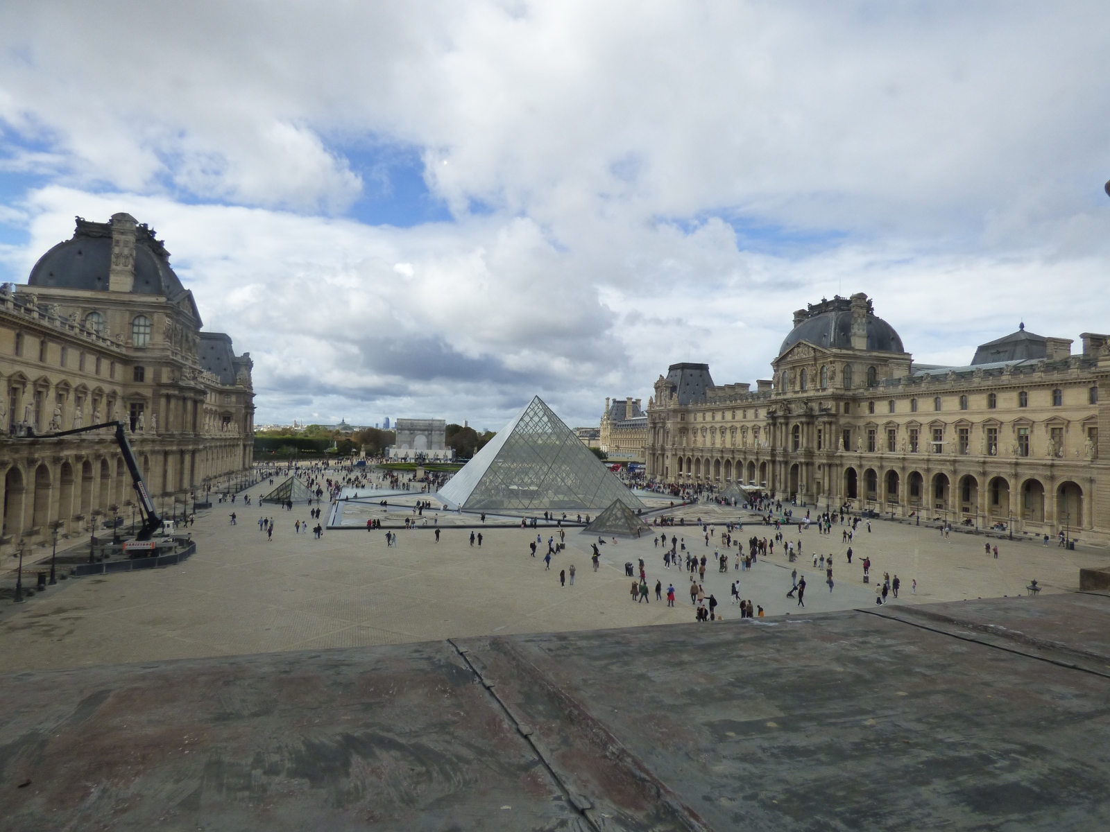 Paris | Sept 2023 Click here for Thumbnail View La Pyramide du Louvre Image 12 of 95 The Pyramid and courtyard at the Louvre, through a window
