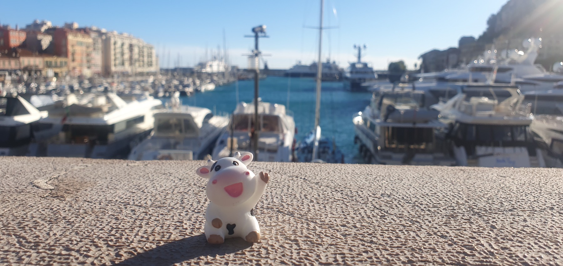 The Travelling Cow Click here for The Travelling Cow Thumbnail View Travelling Cow at the Old Port in Nice Image 14 of 77 Travelling Cow at the Old Port in Nice